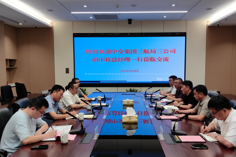8月28日下午,中交集團三航局三公司黨委副書記、總經理胡小柱一行到訪建設集團。建設集團總經理解廷龍、副總經理陳輝軍參加接待。
